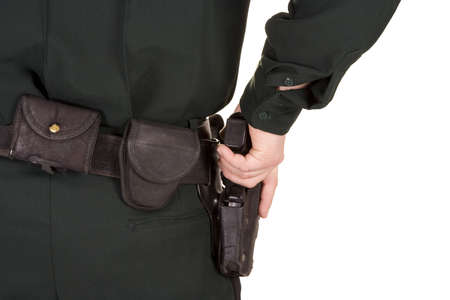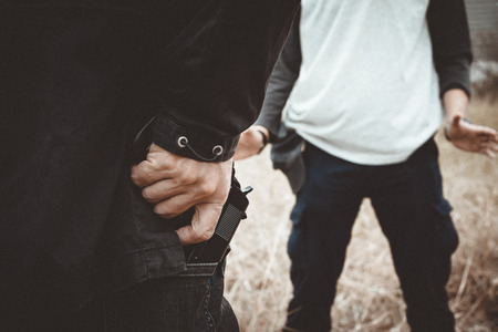 Problems of terrorism and the unauthorized application of shooting iron. Person holds hide a handgun behind a back