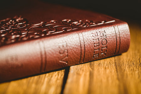 Holy Bible on a wooden table. Selective focus. Religion.