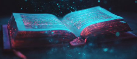 Discovering ancient knowledge through the glowing pages of a magic book