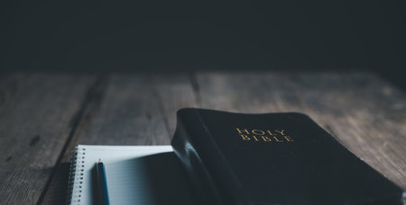 Holy Bible on a wooden table. Selective focus. Religion.