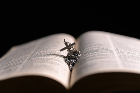 holy bible open with a cross on it