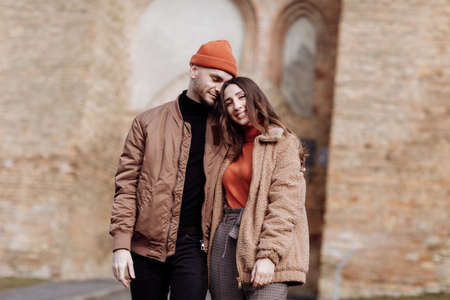 Portrait of a young couple happy millennial casual and modern dress. People of urban style