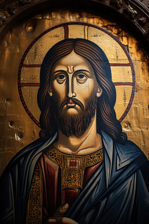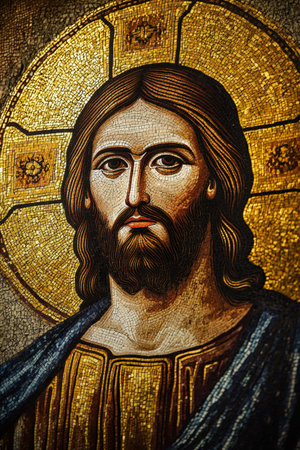 Jesus Christ mosaic icon from a church, showcasing religious faith and Christianity