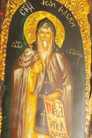 Detail from an icon of an orthodox Bulgarian saint,,Ivan Rilski,,.Selective focus with shallow depth of field.