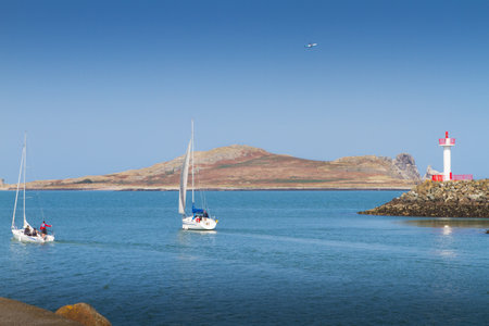 Wide angle view of the Mumbles and the lighthouse, Swansea Wales, wide angle.