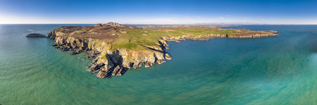 Aerial view of the beautiful cliffs close to the historic South Stack lighthouse on Anglesey - Wales, United Kingdom