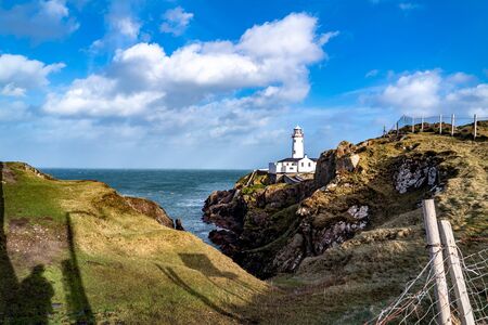 Lighthouse on coastal island near Holyhead on Anglesey in beautiful North Wales. Sunny day.