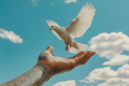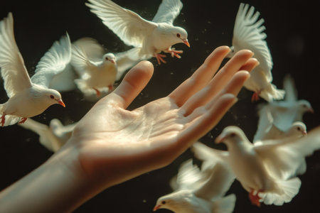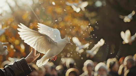 Releasing doves into the air outdoor scene photography nature close-up peaceful moment