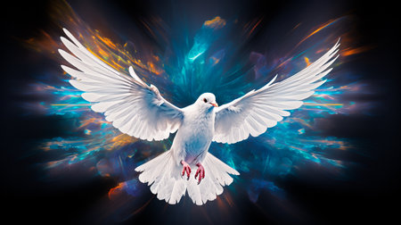 White Dove with Fiery Wings, Symbol of Peace, Purity, and the Holy Spirit on Black Background