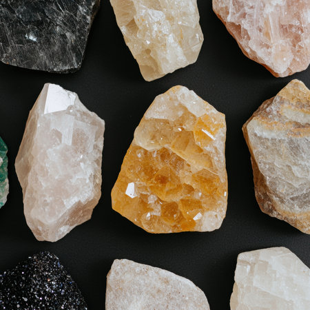 Jewel-toned stones in artistic composition, perfect for backgrounds and luxury branding