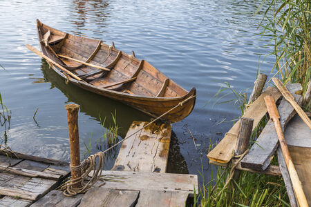 wooden boat near the pier on the nature in the river