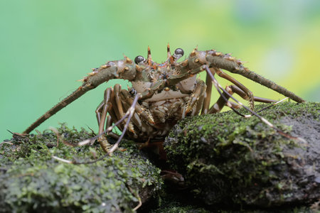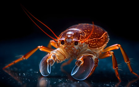 Mexican orange freshwater crayfish in the aquarium, selective focus and space for text
