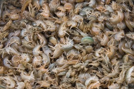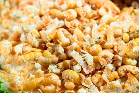 Gammarus pet and fish food background texture. Freshwater shrimp dried fish and turtle food pattern. Fish and turtle food