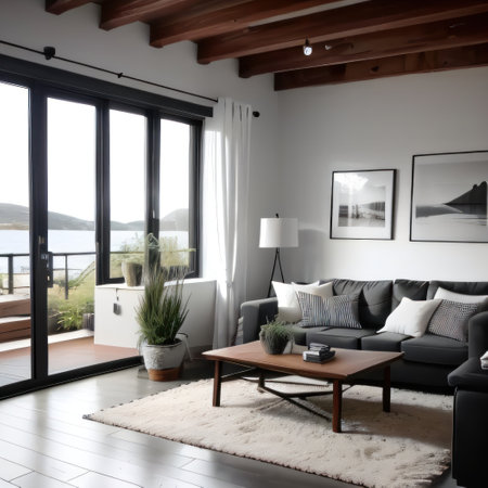 modern living room with large windows and stylish