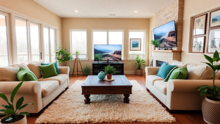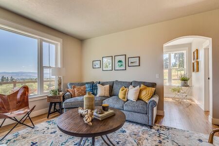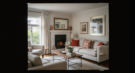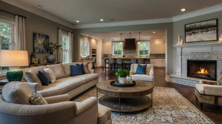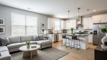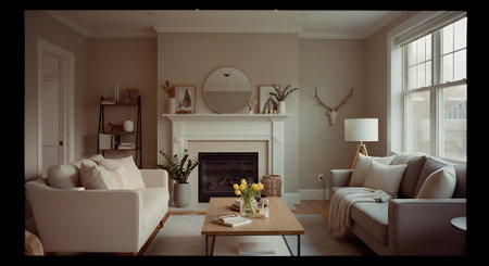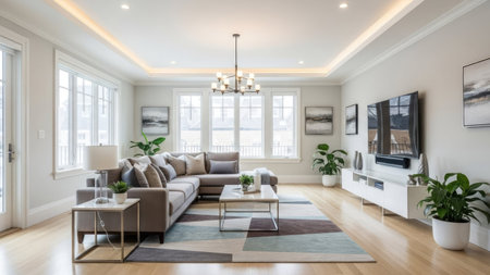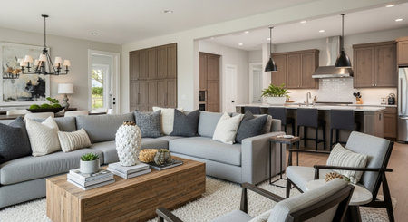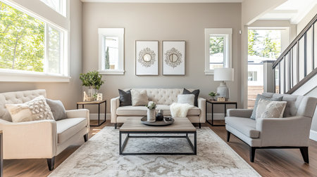 Modern living room in a newly staged residence, featuring stylish furniture, a neutral color palette, and elegant decor, ready for real estate photography