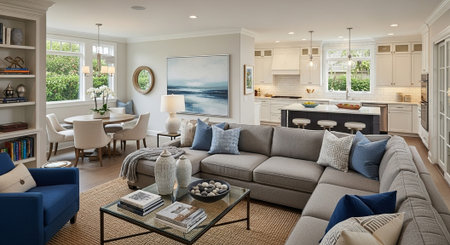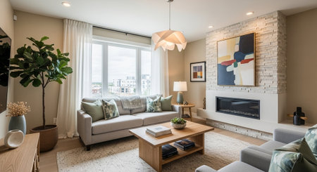 Modern living room in a newly staged residence, featuring stylish furniture, a neutral color palette, and elegant decor, ready for real estate photography