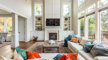 Living room in luxury home with fireplace and living room. Northwest, USA