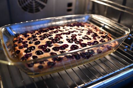Close-up muffins ready to get out of electric oven. Concept of cooking home cake. Tasty food.