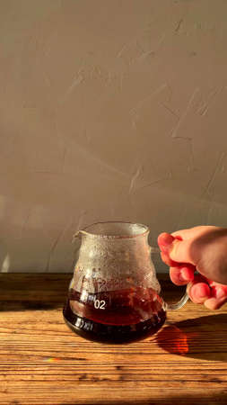 Pour-Over Coffee in Glass Teapot.