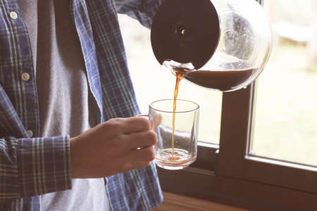 Pouring coffee in a glass. Toned image