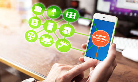 Smart home, Control electronic devices using mobile phones, operating system concept of future.