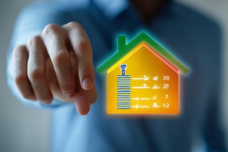 Businessman interacting with virtual screen for energy efficiency in home construction audit