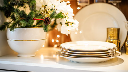 Dishware and crockery set for winter holiday family dinner, Christmas homeware decor for holidays in the English country house, gift set and home styling inspiration