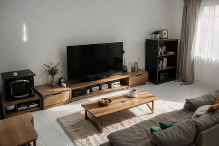 Detailed perspective of a cutting edge smart tv in a stylish contemporary living room setting