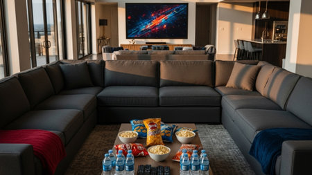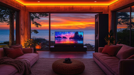 Cozy movie night experience home theater interior design relaxing environment indoor viewpoint comfort concept