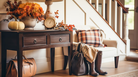 Autumnal hallway interior design and house welcoming autumn entryway stairway and entrance hall home decor in an English