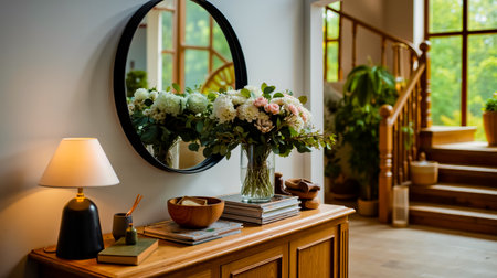 Cozy entryway with natural decor and warm wooden accents in a bright setting