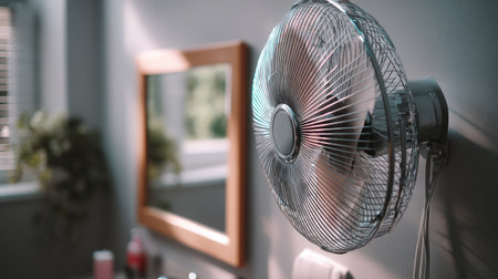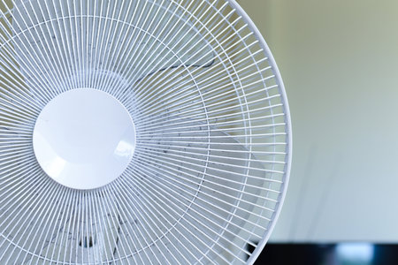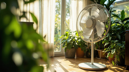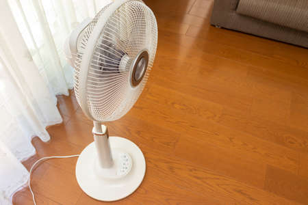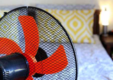 Cooling down the air temperature in the bedroom during hot and stuffy summer with the power of an electric home floor fan.