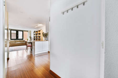 Bright white walls and interior details of modern corridor
