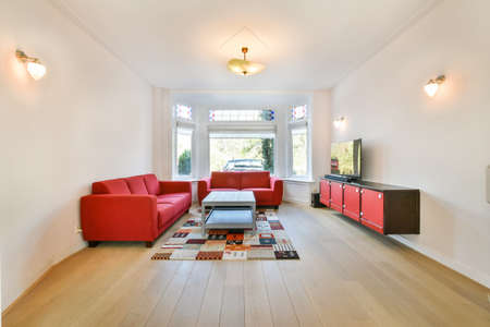 Modern living room interior design with sofa and tv