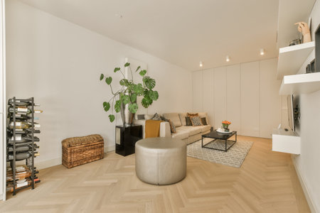 Designed in a minimalistic style living room interior
