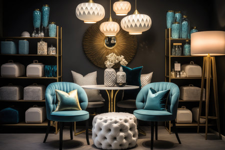 interior design shop, showcasing a variety of furniture, lighting and decor pieces, created with generative ai