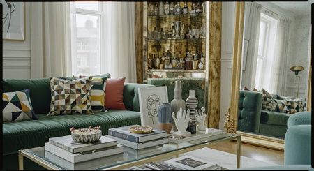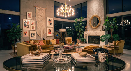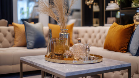 Explore the elegance of a modern living room with stylish decor and warm tones.