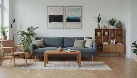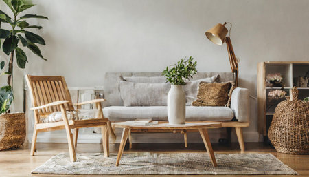 scandinavian living room natural decorating material and color scheme with daylight home interior design stylish background concept living room design mockup with warm comfort and cosy,