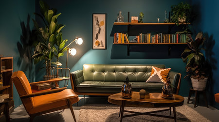 Inspiring office interior design Mid-century style Lounge featuring Retro furniture architecture. Generative AI AIG 31.