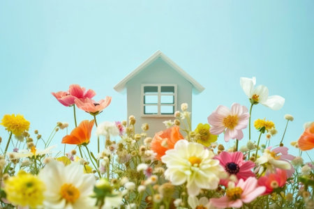 Whimsical cottage amidst vibrant spring blossoms, evoking a sense of tranquility and charm, perfect for nature lovers. Generated A.I.