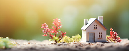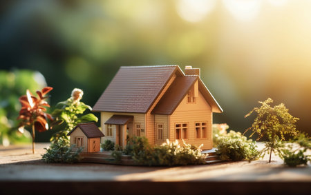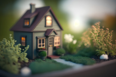Miniature house model in the garden. Real estate concept. Selective focus.