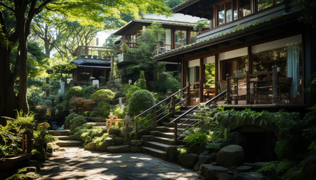 Japanese culture meets nature beauty in tranquil staircase architecture generated by artificial intelligence