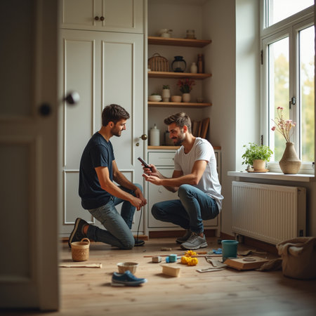 Apartment owner renovating and upgrading, documenting the process for inspiration. Copy Space