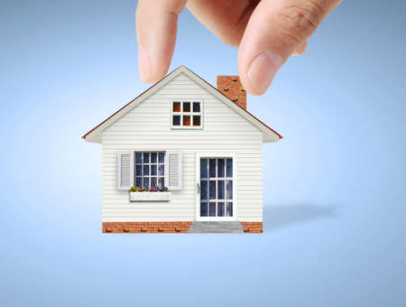 A toy house in the hands of a child. The concept of buying, renting, mortgage housing.