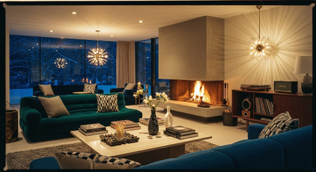 Discover the warmth and style of a beautifully lit modern living room with elegant fixtures.