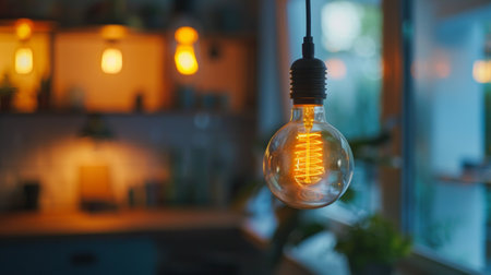 Vintage filament light bulb in cozy living room