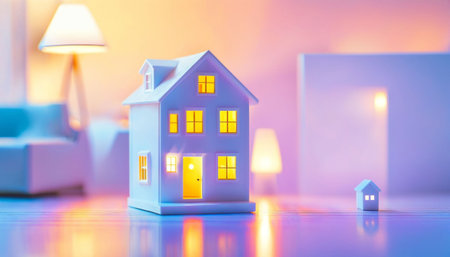 photo of mini house toy with glowing light, generative AI