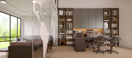 Working room manager and living.Office furniture.Modern style.3d rendering