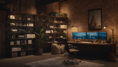 Inspiring office interior design Modern style Home office featuring Statement desk architecture. Generative AI AIG 31.