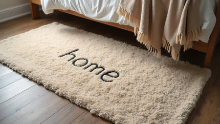 Still life in hygge style with wooden word home, heart and knitted element. The concept of home comfort and modern style.